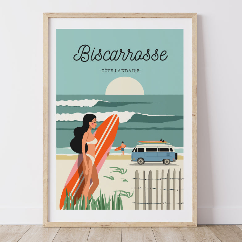 Affiche déco chic et vintage BISCARROSSE - Côte Landaise