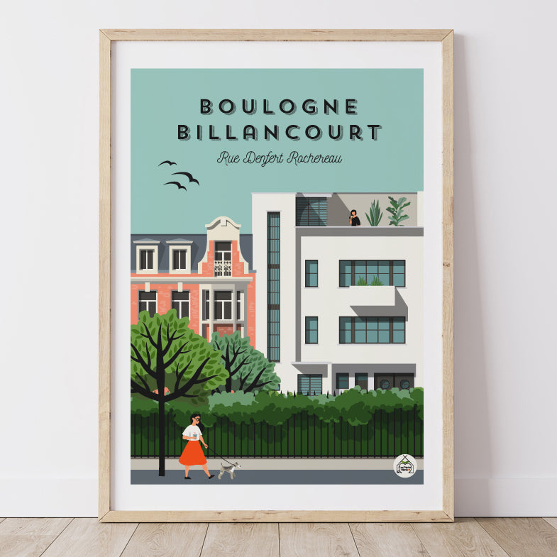 Affiche déco chic et vintage BOULOGNE-BILLANCOURT - Rue Denfert Rochereau