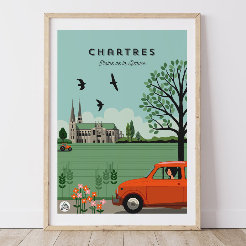Affiche déco chic et vintage CHARTRES" Plaine de Beauce